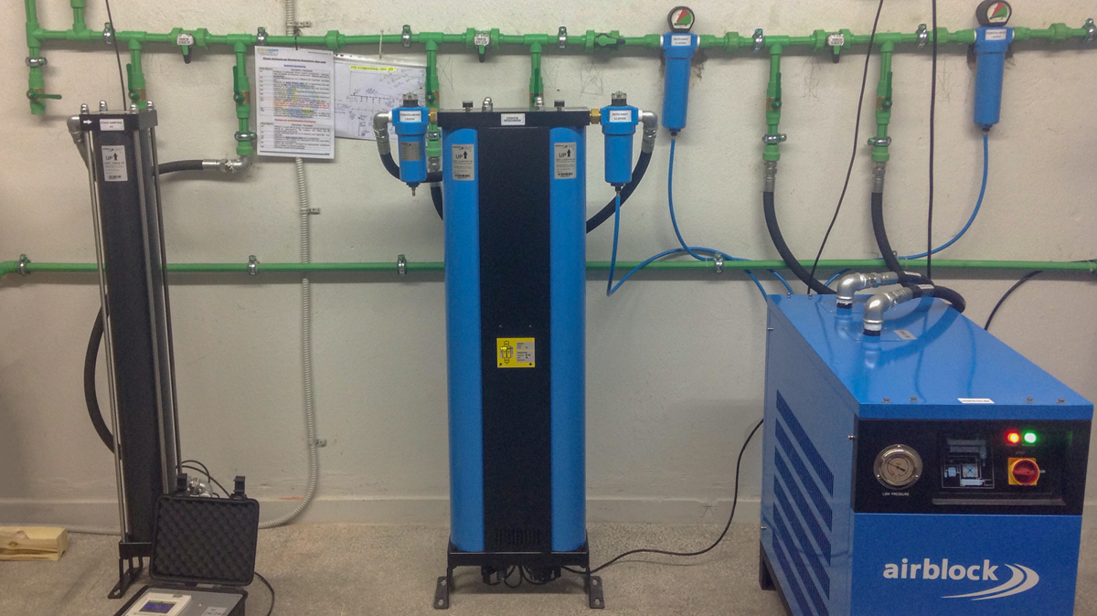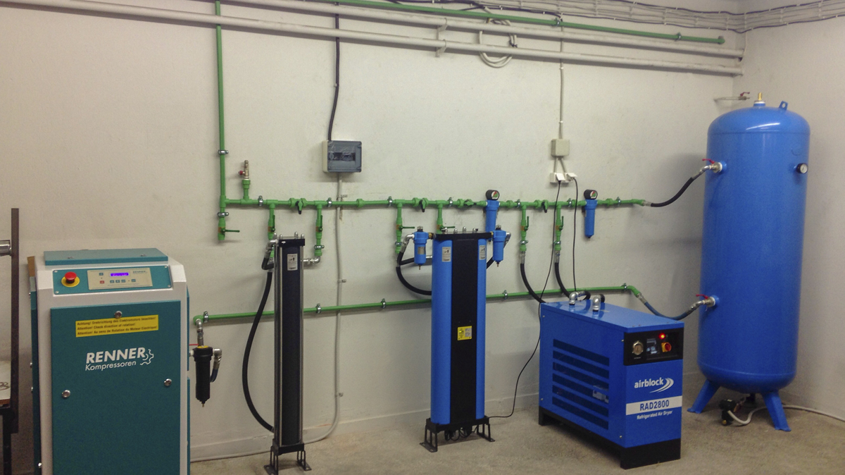Τοποθετήθηκε κοχλιοφόρος αεροσυμπιεστής Renner 15KW-20HP, αεροφυλάκιο όρθιο 500 lt Coinox με ηλεκτρονική αφυδάτωση μηδενικής απώλειας και ξηραντής RAD2800 Airblock με ενσωματωμένο scroll συμπιεστή Panasonic. Εγκαταστάθηκαν επίσης, ένα φίλτρο στερεών σωματιδίων και ένα φίλτρο λαδιού Omega, ένας ξηραντής προσροφητικού τύπου Omega, ένας πύργος άνθρακα TACm70, διαφορικά μανόμετρα που περιέχονται εντός των φίλτρων και αυτόματες αφυδατώσεις.