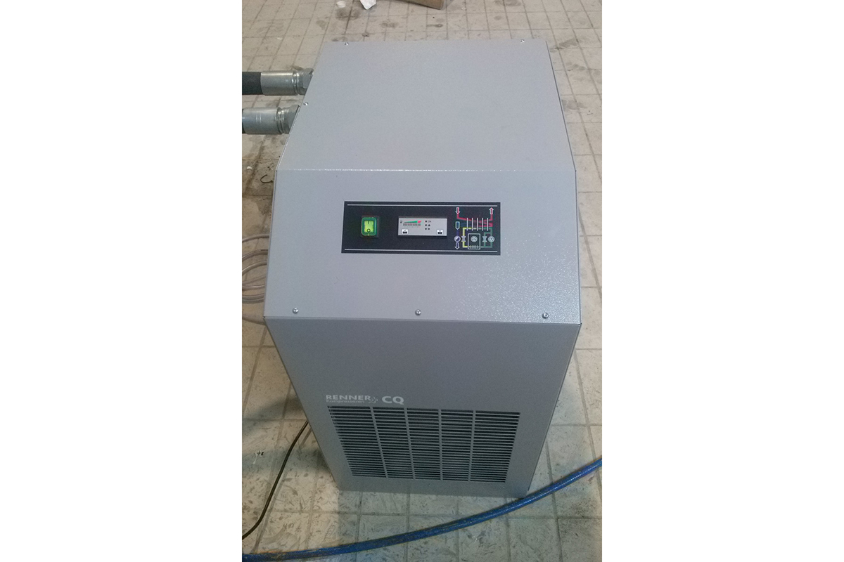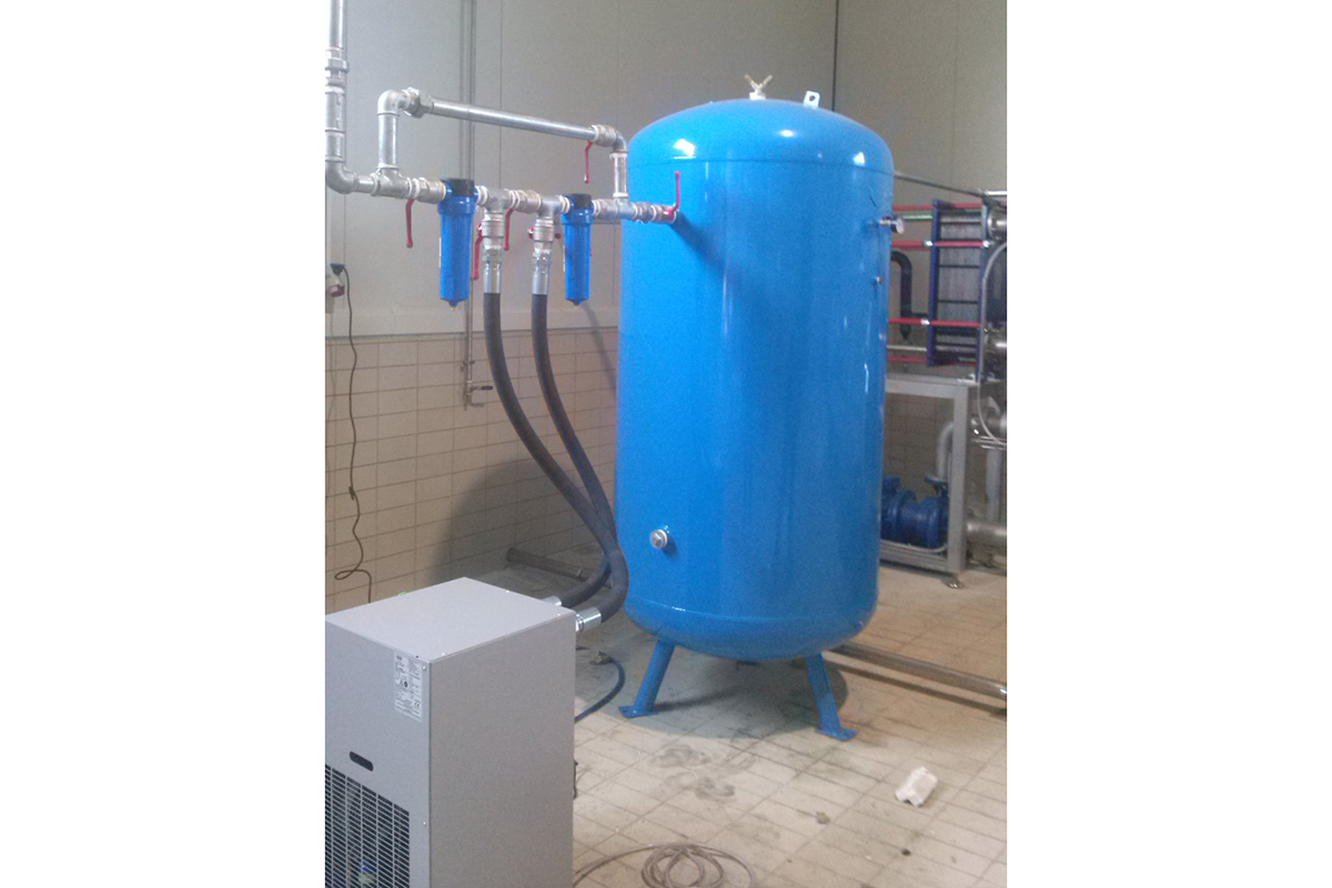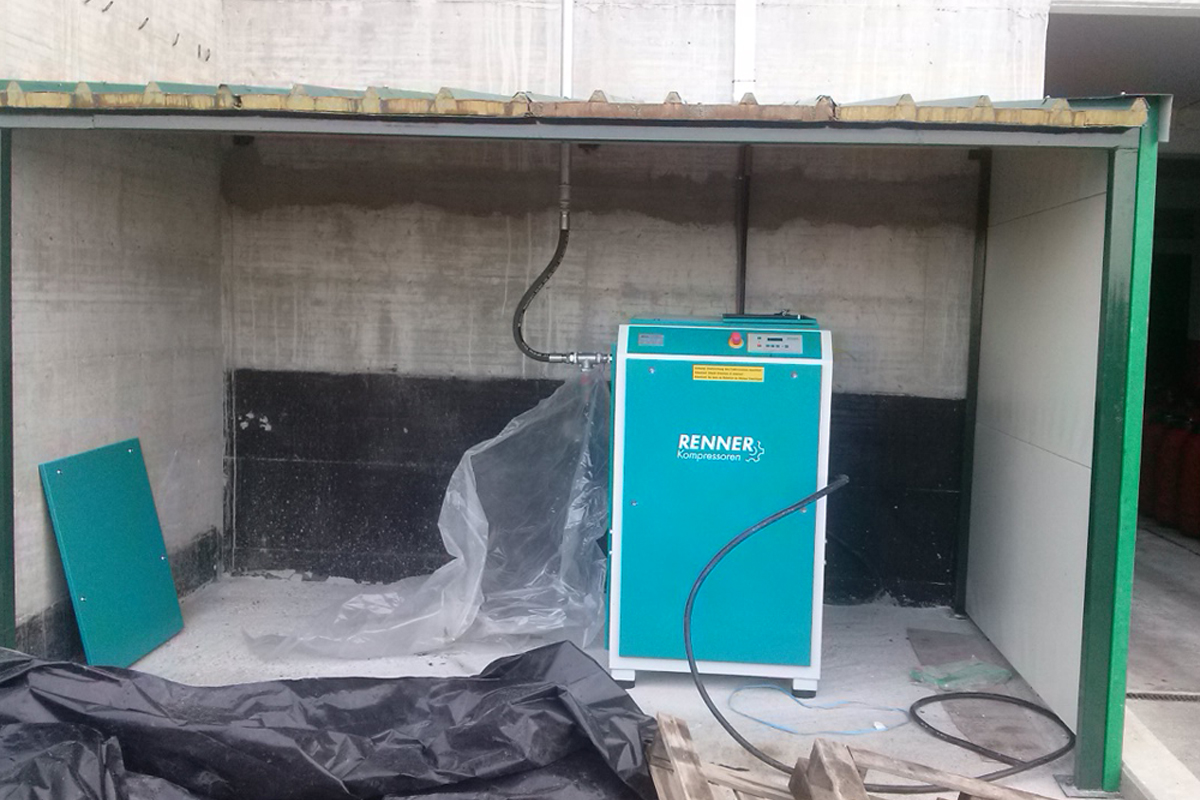 A RENNER screw compressor with a production capacity of 6,000 lt / min was installed in an olive standardization unit to supply air machines. The compressor was mounted on the factory terrace, and two floors below were a RENNER RKT dryer, OMEGA AF series filters, and a Coinox 2000 Lt.