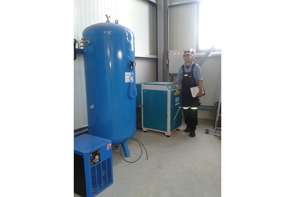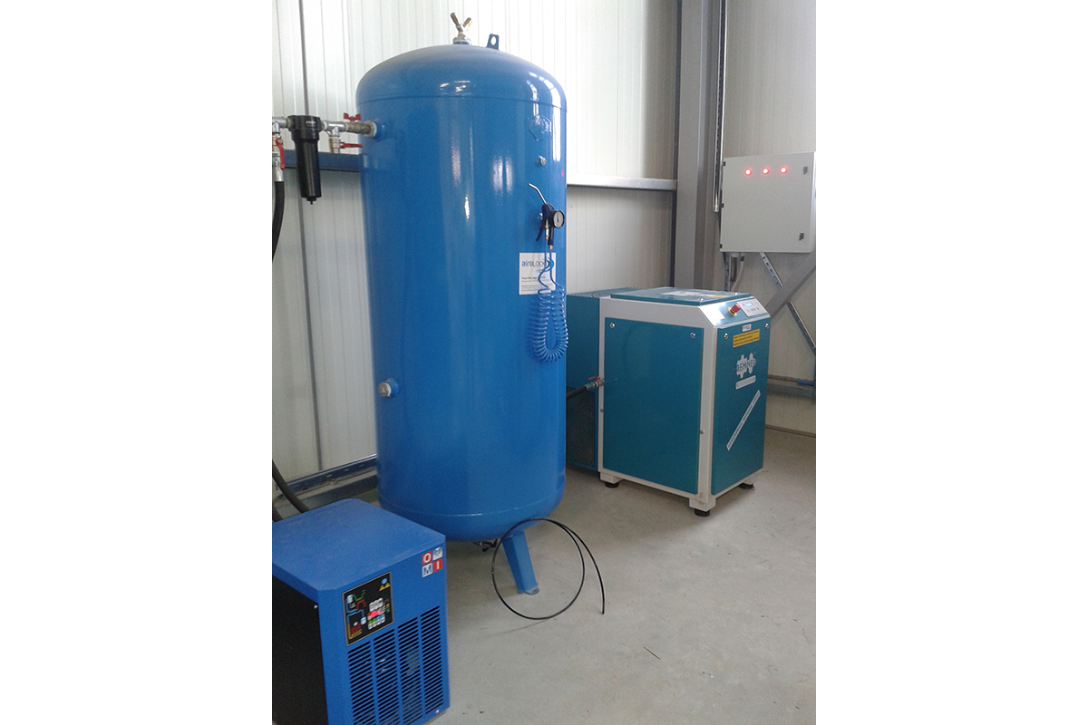 A RENNER RS-15 screw compressor with production capacity of 2.000 lt / min was installed in a unit for the supply of air machines. We connected also a HIROSS dryer, prefilter and postfilter and a 1000 lt air-receiver.