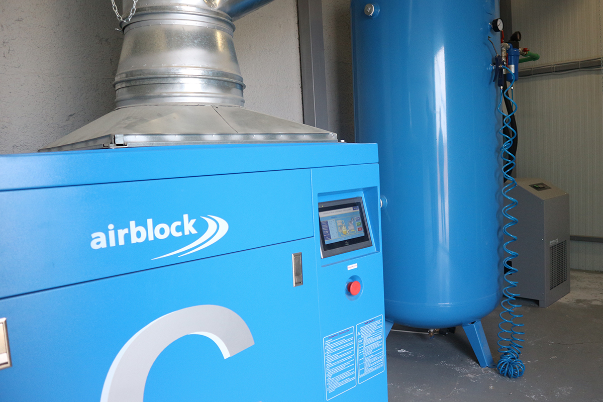 Big furniture production plant in Larissa entrusted AIRBLOCK with the study, installation and technical support of its compressed air production system. In this case, an AIRBLOCK 22kW screw compressor with a permanent magnet inverter and motor was installed, then a 900 liter air-receiver, a refrigeration dryer with a cooling capacity of 5,000 lt / min in a by-pass configuration, and AF series filters.