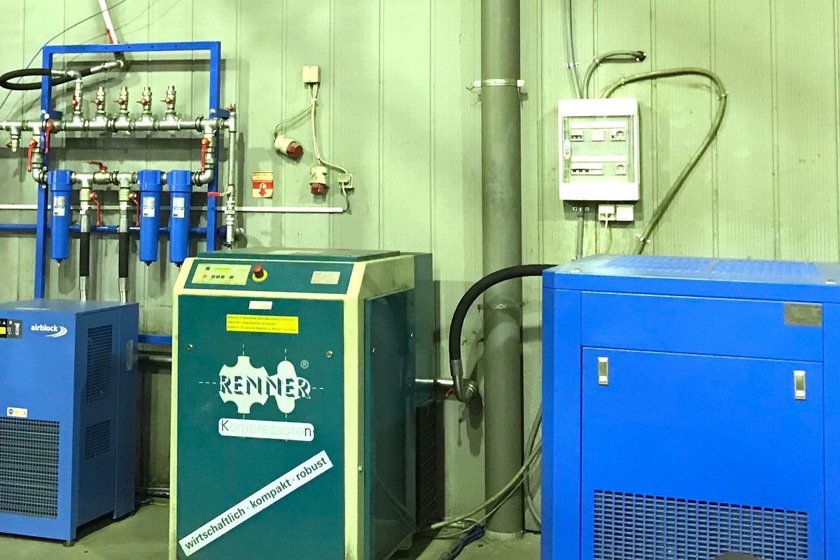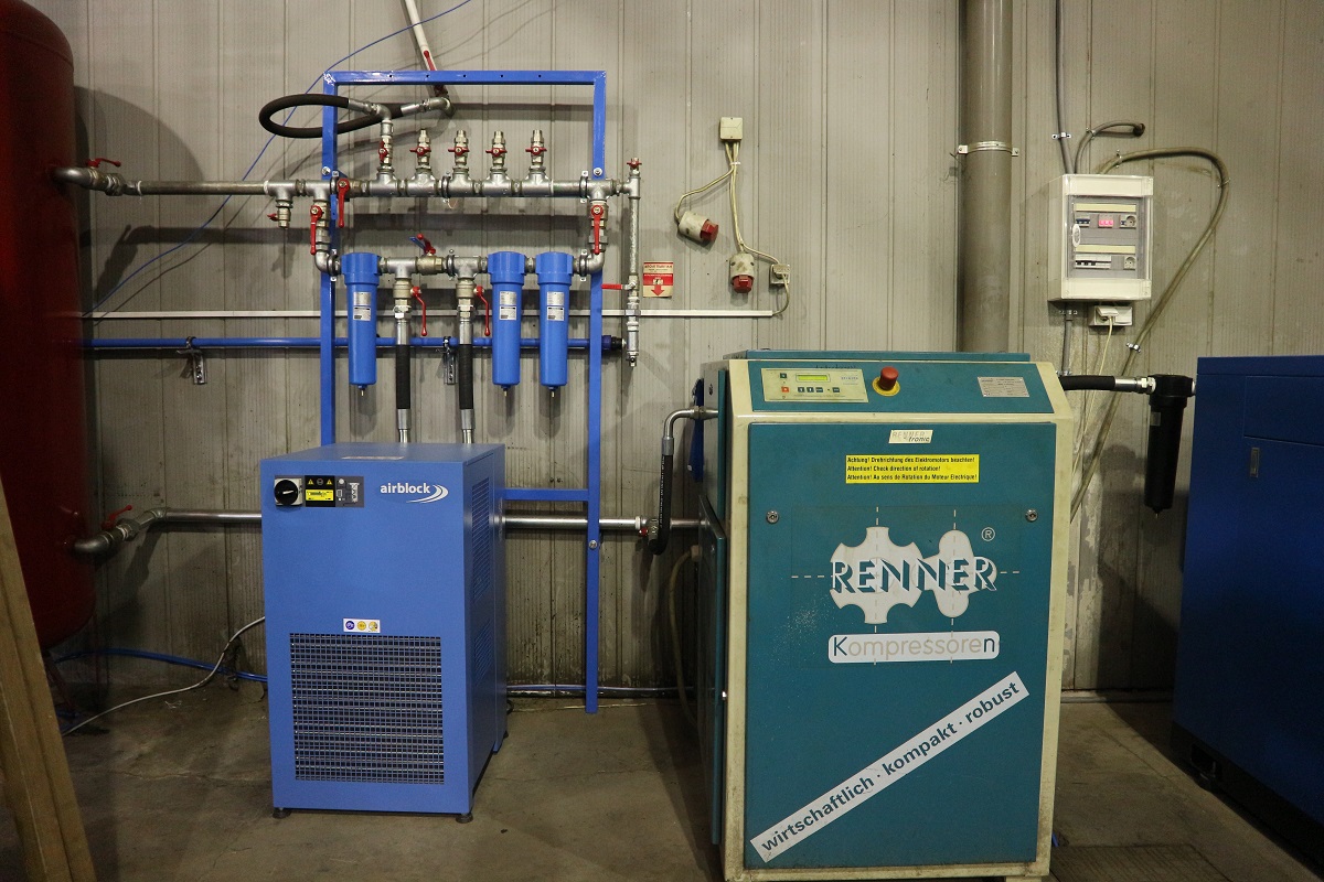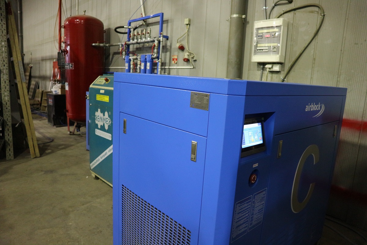 New large installation of compressed air production from Airblock. In the above installation, you see an OL 37 CB AIRBLOCK screw compressor with 50hp in parallel with a RENNER 40hp screw compressor. The system is complemented by an Omega Air 9.500 lt / min dryer, three Omega AF filters and a multi-output manifold for all factory production lines.