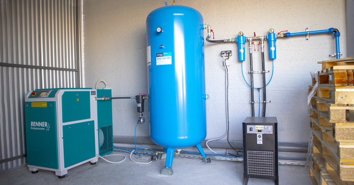 Η εγκατάσταση περιλάμβανε: Κοχλιοφόρο αεροσυμπιεστή 𝗥𝗦-𝗣𝗥𝗢 𝟭𝟱.𝟬, όρθιο αεροφυλάκιο 900lt (11 bar), ξηραντή ψυκτικού τύπου, RDP 235, ηλεκτρονική αυτόματη αφυδάτωση, μηδενικής απώλειας 𝙆𝙖𝙥𝙩𝙞𝙫-𝙈𝘿, φυγοκεντρικό διαχωριστή CKL 018-B, στρογγυλή αυτόματη αφυδάτωση AOK 20B. Τοποθετήθηκαν επίσης, 2 φίλτρα σε διάταξη 𝙗𝙮𝙥𝙖𝙨𝙨, φίλτρο στερεών σωματιδίων (3 micron) και φίλτρο λαδιού (0,1 micron).